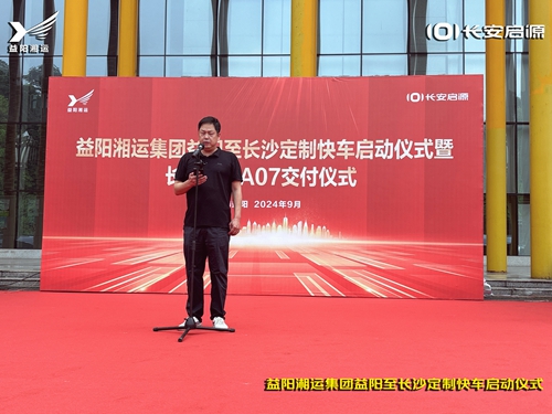 9月3日上午9時(shí)28分,朝陽汽車站前坪整齊停放了14臺(tái)掛上大紅綢的新能源長(zhǎng)安啟源A07純電動(dòng)車。這是益陽湘運(yùn)集團(tuán)益陽至長(zhǎng)沙定制快車啟動(dòng)儀式暨長(zhǎng)安啟源A07純電動(dòng)車交付儀式現(xiàn)場(chǎng)。