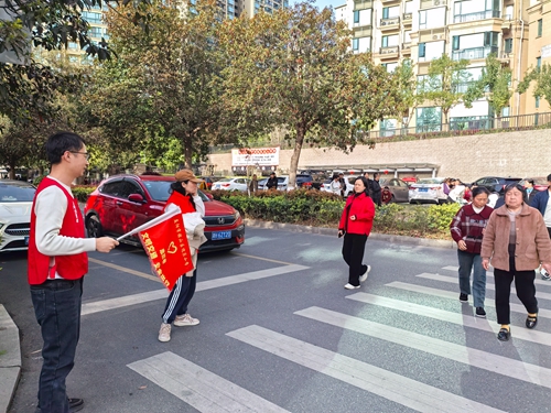 這是共青團益陽湘運投資控股股份有限公司委員會組織開展的“愛心護學(xué)”志愿服務(wù)活動場景。為落實共青團益陽市委“雷鋒家鄉(xiāng)學(xué)雷鋒”青年志愿服務(wù)活動精神,當(dāng)天,公司團委書記曹賽姣組織了9名團員青年化身為“安全宣傳員”,向過往行人和學(xué)生宣傳交通安全知識,提醒做好自身防護。(曹賽姣 鄧玉姬)