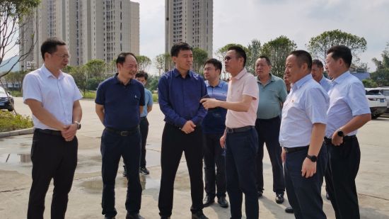 高博(左三)聽取桃江縣客運物流綜合樞紐項目建設進度。 胡衛(wèi)紅 攝