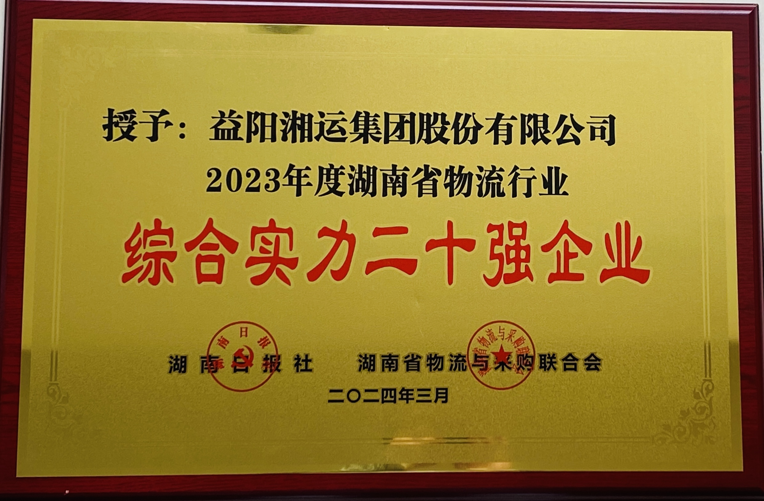3月26日,益陽湘運(yùn)集團(tuán)股份有限公司獲“2023年度湖南省物流行業(yè)綜合實(shí)力二十強(qiáng)企業(yè)”。
