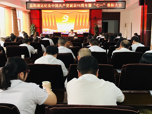 7月1日,在“益陽湘運紀(jì)念中國共產(chǎn)黨誕辰98周年暨‘七·一’表彰大會”上,公司黨委書記文彩純?yōu)槿w與會人員上了一堂生動的黨課。