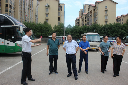 6月20日,沅江市委書記黃育文(左三)率應(yīng)急管理、消防、交通和城管等部門,來(lái)到沅江百合汽車站檢查指導(dǎo)安全生產(chǎn)工作。沅江客運(yùn)分公司經(jīng)理成科(左一)陪同并匯報(bào)工作。